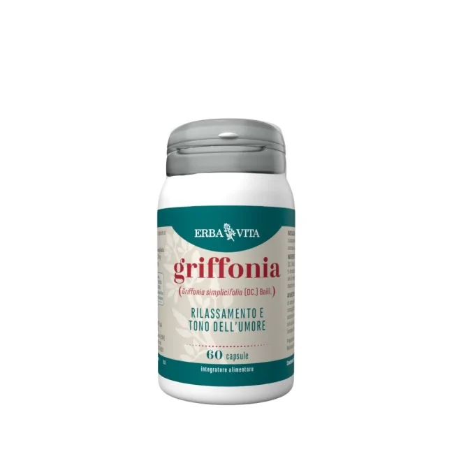 Erba Vita Group Griffonia 60 Capsule è un integratore alimentare a base di estratto di semi di Griffonia simplicifolia (5-HTP), un aminoacido precursore del neurotrasmettitore serotonina. La serotonina svolge un ruolo importante nella regolazione del tono dell'umore, del sonno, dell'appetito e del senso di benessere.