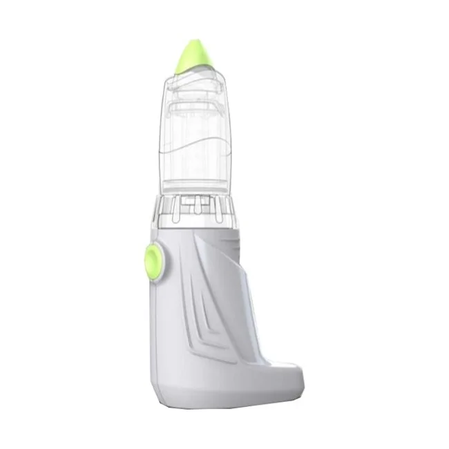 L'apparecchio è una doccia nasale micronizzata portatile per la terapia aerosolica. L'apparecchio è composto da una unità di base contenente un micro compressore pneumatico e una batteria ricaricabile. Sulla parte superiore è presente la vaschetta porta farmaco con la relativa campana di nebulizzazione. Il funzionamento avviene tramite batteria ricaricabile e lo stato della carica è indicato da 3 led luminosi. L'azionamento consente al liquido contenuto nella vaschetta di essere nebulizzato tramite un atomizzatore nelle cavità nasali. Il liquido in eccesso e le secrezioni nasali vengono raccolte in un'intercapedine tra le due campane. Il dispositivo è una doccia nasale micronizzata per la terapia aerosolica che consente la cura delle affezioni delle alte vie respiratorie ed il lavaggio fisiologico (con soluzione fisiologica, ipertonica o acqua termale) e/o terapeutico (con farmaci) delle cavità nasali. Il dispositivo produce un getto di soluzione micronizzata che, diretto nelle cavità nasali, favorisce l'idratazione, la fluidificazione e la rimozione di muco e catarro.
