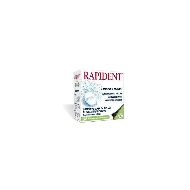 - Rapident Compresse effervescenti è utile per pulire protesi e dentiere in 1 minuto, eliminando residui e macchie e rimuovendo i batteri.