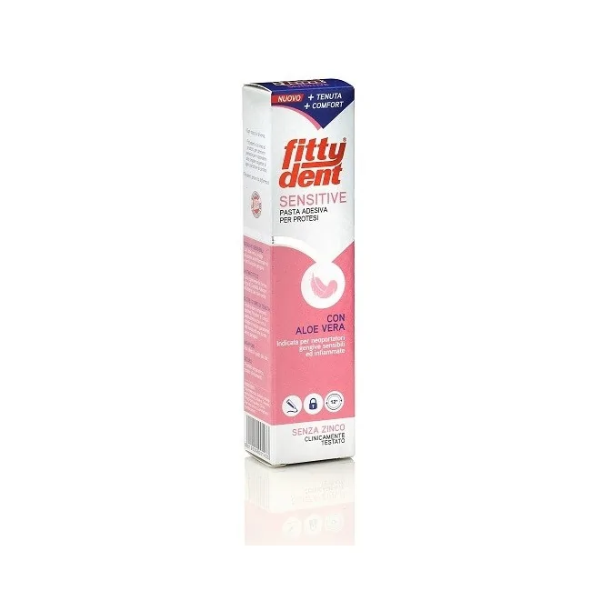Fittydent Sensitive pasta con aloe vera ad azione antinfiammatoria, cicatrizzante e antimicotica.