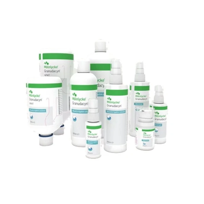 Soluzione super ossidata per l'irrigazione delle ferite. Granudacyn è una soluzione acquosa con pH 7.2 stabile, pronta per l'uso.