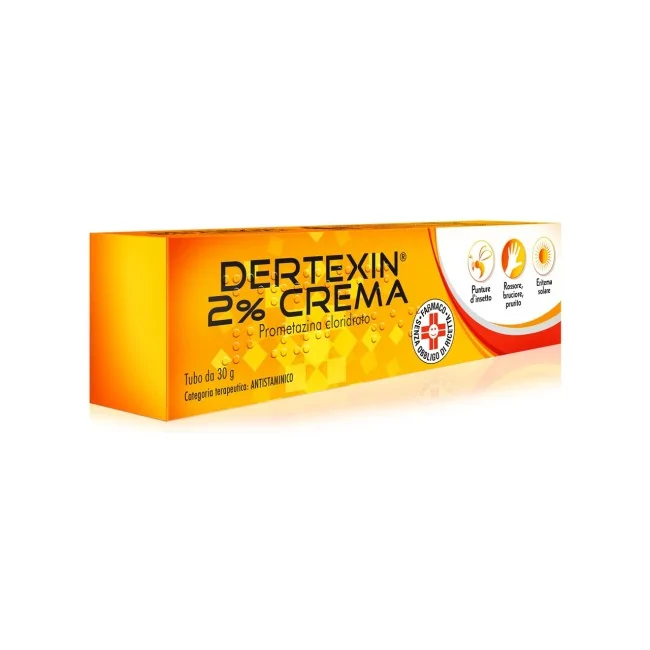 Dertexin è un trattamento sintomatico locale per punture d’insetto e altri fenomeni irritativi cutanei localizzati quali rossore, bruciore, prurito ed eritema solare. Contiene prometazina