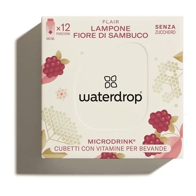 Waterdrop Microdrink Flair 12 Cubetti è un integratore alimentare a base di vitamine e minerali, presentato in formato cubetto effervescente. Ogni cubetto, una volta sciolto in acqua, crea una bevanda rinfrescante e aromatizzata al gusto di lampone.