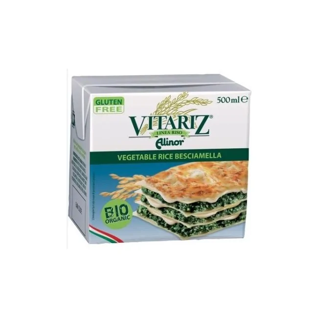 La besciamella di riso è un condimento 100% vegetale a base di bevanda di riso Vitariz, indicata in soggetti intolleranti al glutine. Formato: 500 grammi