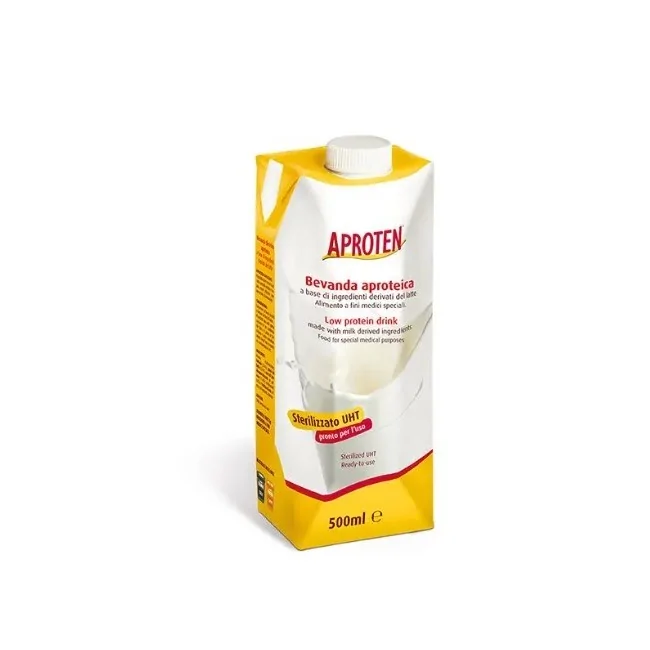 Aproten Bevanda è un alimento dietetico specifico per persone con problemi renali, malattie metaboliche o Parkinson. Contiene basse quantità di proteine, sodio, fosforo e potassio, alleviando il carico sui reni e migliorando la qualità di vita. Indicato per l'uso sotto stretto controllo medico. Formato: 500 ml