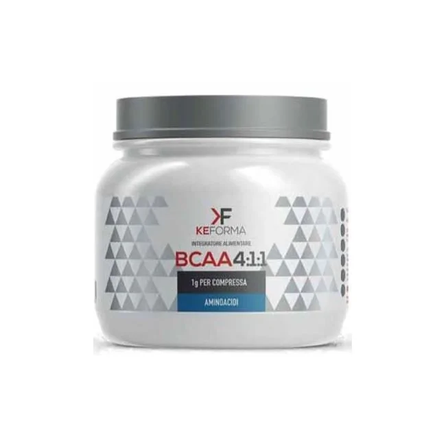 Aquaviva KE BCAA 4:1:1 100 compresse è un integratore alimentare di aminoacidi ramificati con un rapporto 4:1:1 (leucina, isoleucina, valina), formulato per supportare la massa muscolare e la performance sportiva. Formato: 100 compresse