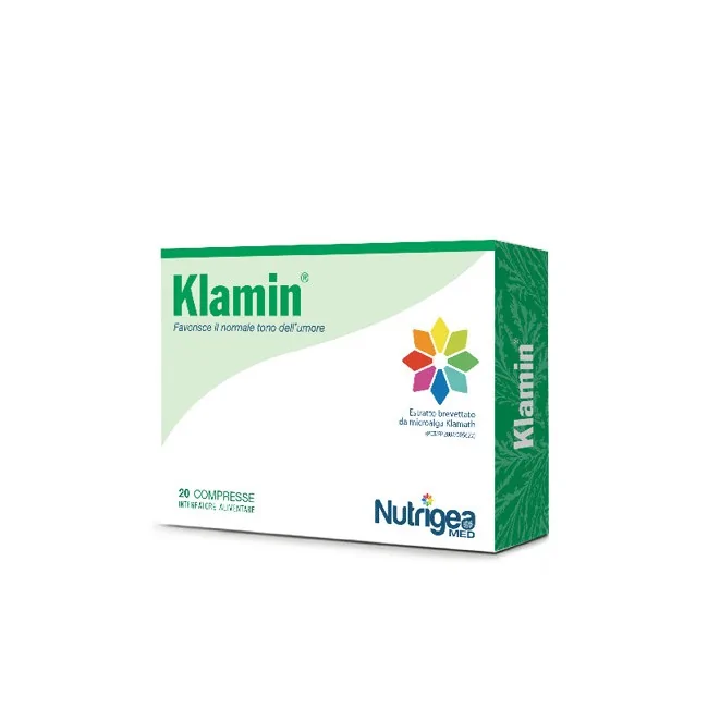 Klamin tavolette è un integratore alimentare a base di microalghe Klamath in grado di agire favorevolmente in casi di ansia, stress e disturbi dell’umore, in grado di sostenere l’empatia e il controllo dell’appetito, rappresenta anche un utile integrazione nutrizionale come anti-aging per ritardare e ottimizzare i processi di invecchiamento