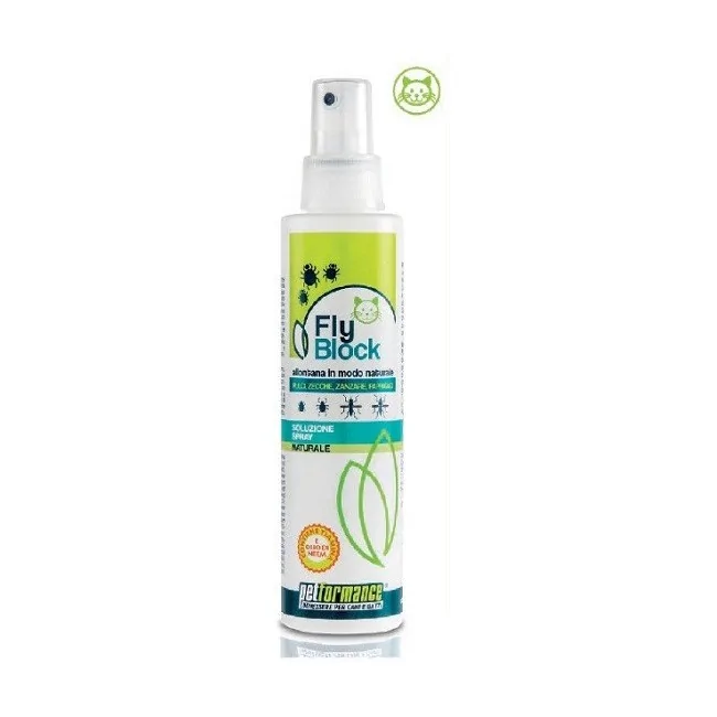 Flyblock protezione gatto è uno spray naturale con vitamine in grado di allontanare zanzare, pulci e zecche. Non è tossico e non contiene alcool.