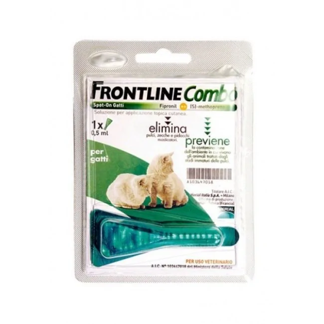 Frontline Combo Spot-on Per Gatti è un farmaco veterinario che elimina e protegge il gatto dalle pulci per 4 settimane e dalle zecche per 2 settimane. Grazie alla combinazione dei suoi due principi attivi, agisce efficacemente e contemporaneamente sulle pulci adulte, le uova, le larve e le pupe, in modo da liberare la vostra casa e il vostro animale dai parassiti e prevenire ulteriori infestazioni, per 6 settimane. Elimina anche i pidocchi masticatori.