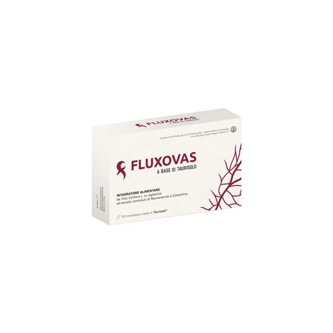 Descrizione Fluxovas, integratore alimentare a base di "Taurisolo", estratto polifenolico da vinacce di Vitis Vinifera (cv Aglianico), è in grado di regolare la corretta funzionalità dell'apparato cardiovascolare e contribuisce alla normale funzione del microcircolo.