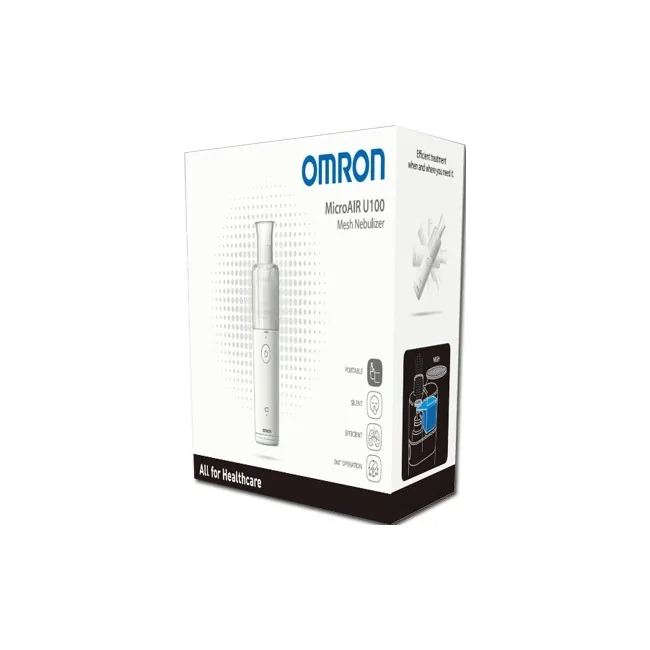 Il nuovo Omron MicroAIR U100 è un piccolo nebulizzatore portatile che permette al paziente di inalare il proprio medicinale ovunque, e in qualunque momento ne abbia necessità. La tecnologia mesh, unica nel suo genere, lo rende più efficiente e più agevole da utilizzare, rispetto ai nebulizzatori tradizionali. L'elevata silenziosità consente l'impiego con la massima discrezione, senza creare alcun disturbo alle altre persone.