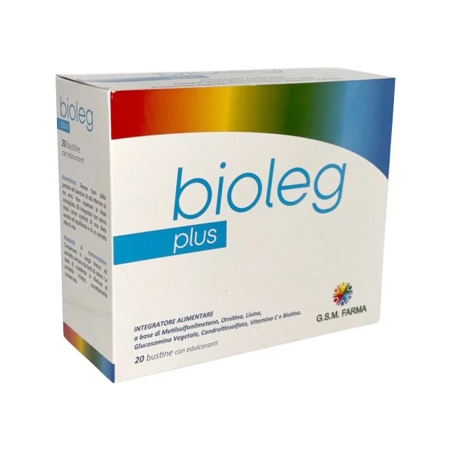 Bioleg plus è un integratore a base di metilsulfonilmetano, ornitina, lisina, glucosamina vegetale, condroitinsolfato, vitamina C e biotina. La vitamina C favorisce la normale formazione del collagene per la normale funzione dei vasi sanguigni, delle ossa e delle cartilagini, contribuisce alla riduzione della stanchezza e dell'affaticamento e contribuisce alla protezione delle cellule dallo stress ossidativo. La vitamina C e la biotina contribuiscono al normale metabolismo energetico.
