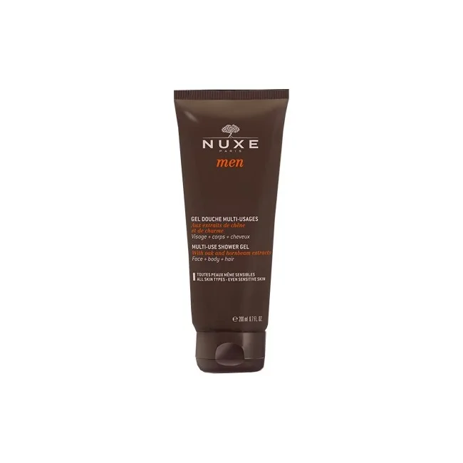 Nuxe Men è un gel doccia multiuso per uomo a base di vegetali, che deterge delicatamente corpo, viso e capelli. Formato: 200 ml