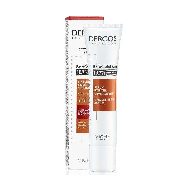 Dercos Technique Kera-Solutions Siero Sigilla Punte è un trattamento intensivo formulato per riparare e proteggere le punte dei capelli, spesso le zone più danneggiate e fragili. Formato: 40 ml