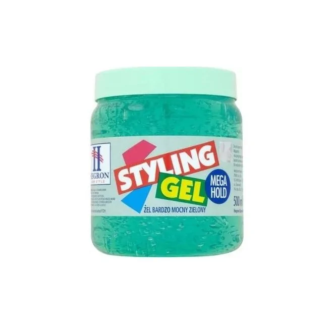 Hegron Styling Gel Mega Hold è un gel per capelli studiato per fissare i capelli in qualsiasi posizione, adatto a tutti i tipi di capelli. Viene venduto in un flacone capiente da 500 ml.