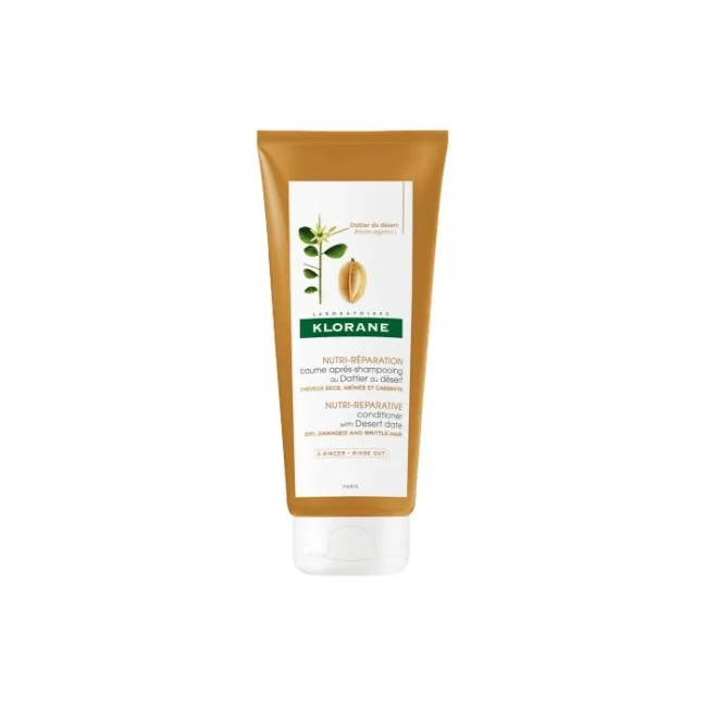 Klorane Balsamo Dattero Del Deserto per capelli secchi, rovinati, che si spezzano. Apporta gli elementi essenziali al nutrimento e alla resistenza del capello. La sua texture ricca avvolge il capello in tutta la sua lunghezza per una ristrutturazione integrale dalla radice alla punta.