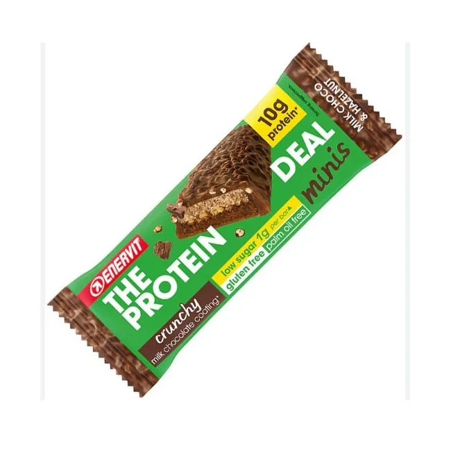 L'Enervit Protein Deal Bar Hazelnut 33g è una barretta proteica di piccola taglia, ideale come snack "spezza-fame" o per integrare l'apporto proteico.