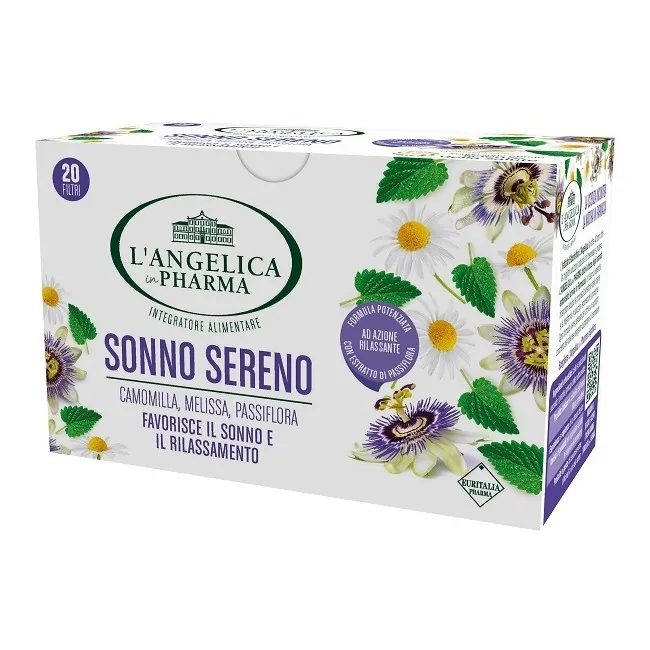L'Angelica Tisana Sonno Sereno è una tisana, formulata con una miscela di erbe naturali come Camomilla, Tiglio e Passiflora. È ideale per favorire il rilassamento e conciliare un riposo sereno, aiutando a contrastare in modo naturale i disturbi del sonno. Formato: 20 filtri