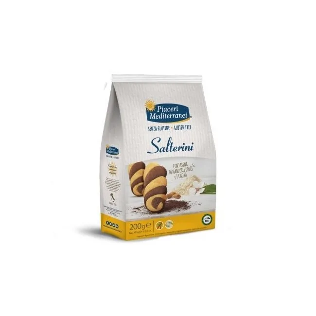 I salterini Piaceri Mediterranei sono un'ottima alternativa per chi ama i biscotti tradizionali ma deve seguire una dieta senza glutine. Il loro gusto intenso e la loro consistenza li rendono un piacere per il palato. Formato: 200 grammi