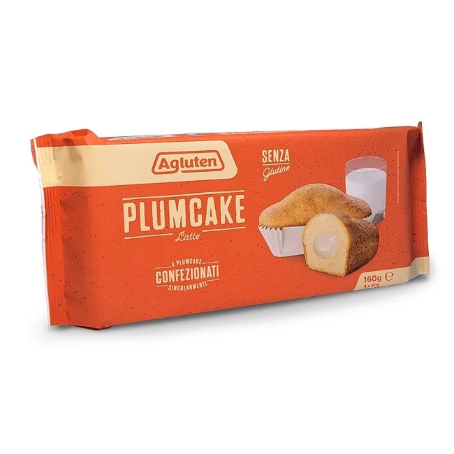 Il prodotto Agluten Plumcake al Latte è un soffice dolce da forno specificamente formulato per persone con intolleranza al glutine. Formato: 4 x 40 grammi