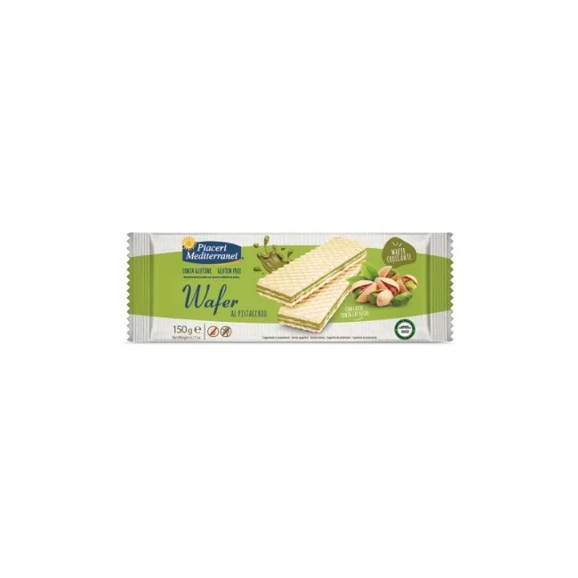 Gli Eurospital Piaceri Mediterranei Wafer Pistacchio sono deliziosi wafer croccanti e senza glutine, ripieni di una gustosa crema al pistacchio, perfetti per una pausa golosa. Formato: 150 grammi