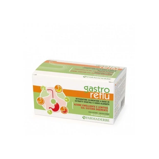 Farmaderbe Gastro Reflù è un integratore che favorisce il benessere del sistema digerente e intestinale. A base di estratti vegetali e sodio alginato vegetale, Gastro Reflù protegge la mucosa gastrica limitando il contatto con le secrezioni acide.