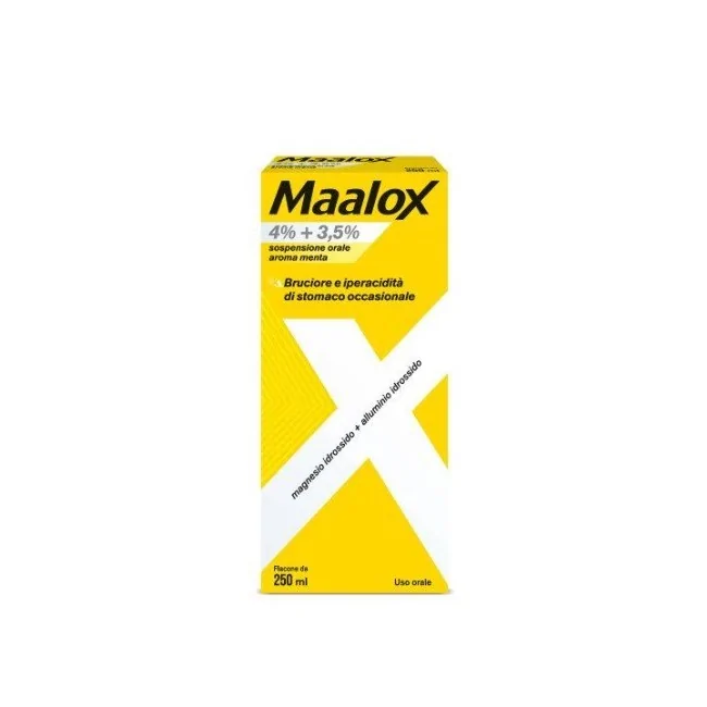 Maalox Plus Sospensione Orale è un farmaco senza obbligo di prescrizione con alluminio idrossido, magnesio idrossido e dimeticone. L'associazione di questi 3 principi attivi, contrastare l'acidità ed il bruciore di stomaco e può essere usato come: