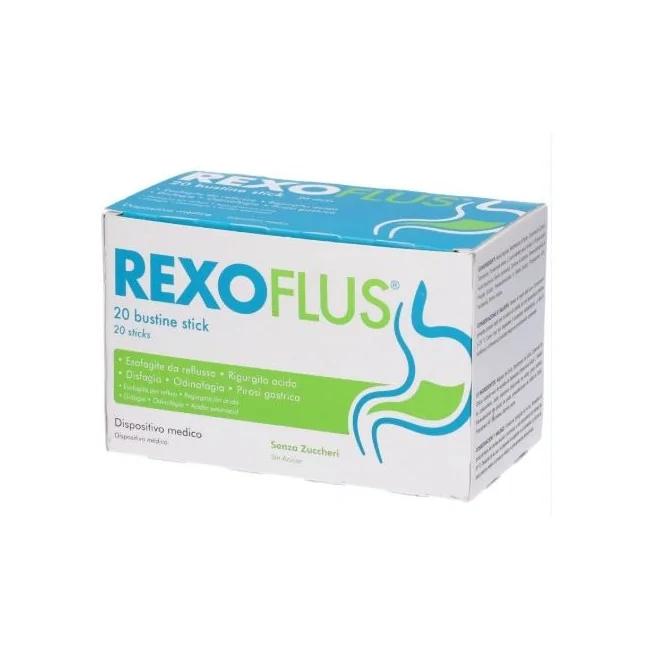 Rexoflus è un dispositivo medico in pratici stick orosolubili specificamente formulato per il trattamento del reflusso gastroesofageo. La sua azione meccanica crea una barriera protettiva sulla mucosa esofagea, contribuendo a ridurre rapidamente i sintomi associati come bruciore di stomaco, rigurgito acido, tosse irritativa e difficoltà a deglutire.