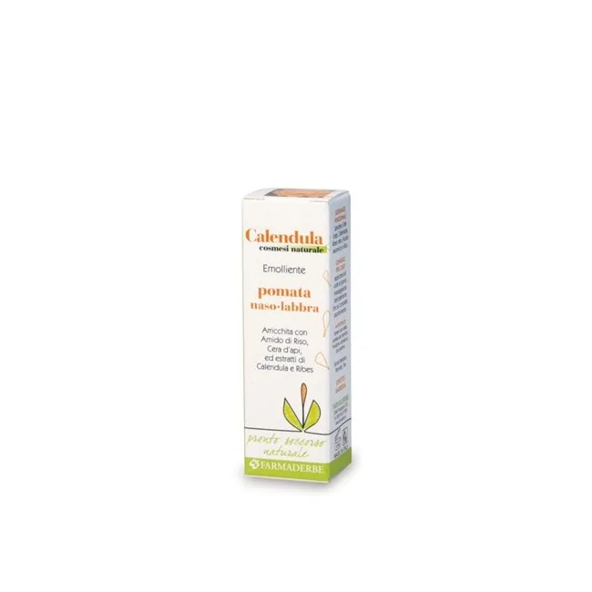 Farmaderbe Calendula Pomata Naso Labbra svolge un'azione emolliente sulla cute del naso e delle labbra. Formato: 10 ml