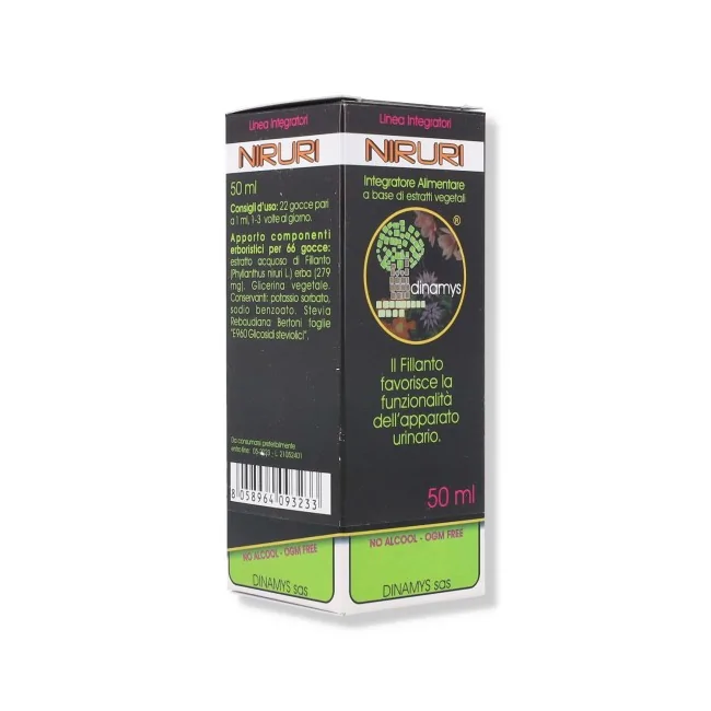 La dose consigliata di Niruri Gocce è di 22 gocce (pari a 1 ml) da diluire in poca acqua, 1-3 volte al giorno.