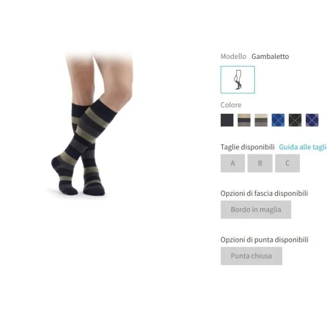 Sigvaris Microfiber Shades Men Gambaletto è disponibile in diversi colori e taglie. Tutti i modelli sono elencati nella scheda prodotto. Il prezzo al pubblico è il medesimo per tutti i modelli. Puoi procedere all'acquisto e poi contattarci per scegliere il modello preferito via telefono al 0236582197 o su Whatsapp al 333247432