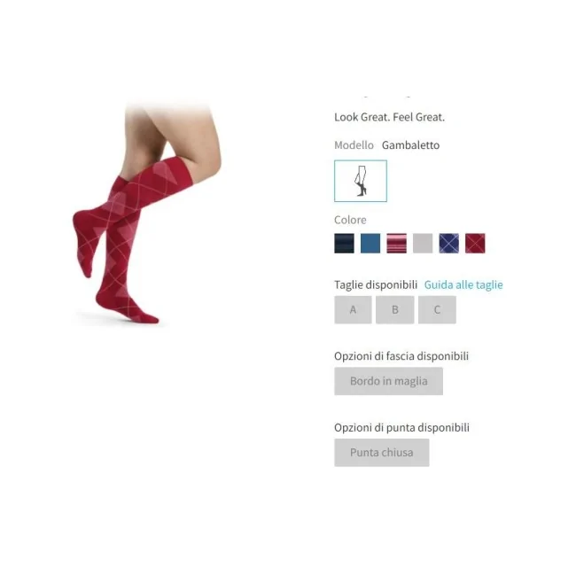 Sigvaris Shades Women Argyle Gambaletto è disponibile in diversi colori e taglie. Tutti i modelli sono elencati nella scheda prodotto. Il prezzo al pubblico è il medesimo per tutti i modelli. Puoi procedere all'acquisto e poi contattarci per scegliere il modello preferito via telefono al 0236582197 o su Whatsapp al 333247432