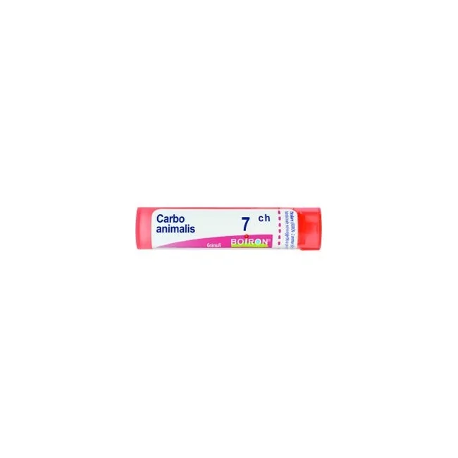 Boiron Carbo Animalis 7ch Granuli omeopatici è un rimedio omeopatico preparato attraverso un processo di diluizione e dinamizzazione, che consiste nel diluire ripetutamente una sostanza di partenza (vegetale, animale o minerale) e nel sottoporla a scuotimenti energici. Questo processo, secondo i principi dell'omeopatia, potenzia l'azione del rimedio.