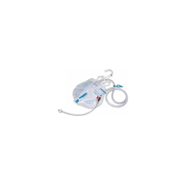 Catetere vescicale in puro silicone 100% trasparente con scanalature longitudinali per il drenaggio delle secrezioni uretrali e per la riduzione del decubito , con imbuto per siringhe con raccordi Luer e Luer – Lock, siringa di acqua e glicerina 10% per il gonfiaggio del palloncino inclusa, in punta radiopaca, con linea radiopaca preconnesso a sacca per la raccolta delle urine con capacità di 2000 ml, con gocciolatoio, valvola di non ritorno, filtro antibatterico, situ di prelievo delle urine senza l’impiego di ago, indicazione del volume prestampato, rubinetto di svuotamento a scomparsa, con clamp, doppio supporto per letto, tubo lungo 120cm.