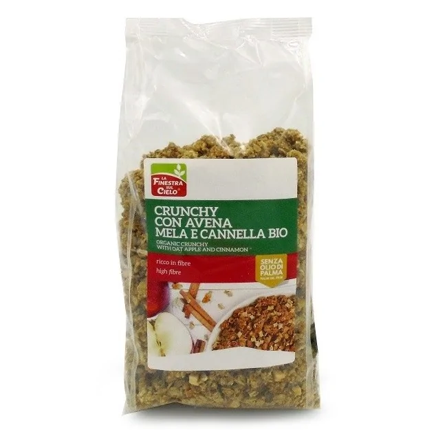 Crunchy con avena mela cannella è un alimento biologico prodotto da La Finestra sul cielo, ideali per la prima colazione. Formato: 375 grammi