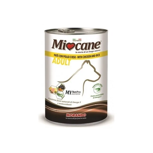 miocane pate' pollo e riso in confezione da 400 grammi ricco di nutrienti come vitamine, minerali ed estratti vegetali