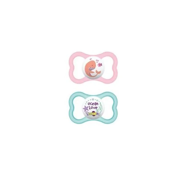 Il MAM Air Ciuccio 6+ Mesi (Femmina) è un bipacco ortodontico in silicone SkinSoft con mascherina extra ventilata. È ideale per pelli sensibili, riduce le irritazioni e include il cofanetto per la sterilizzazione rapida. Formato: 2 pezzi