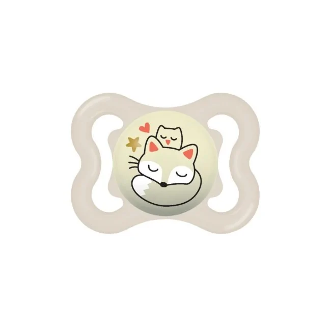 - Funzione Luminosa (Night): Il pomello del succhietto si illumina al buio dopo l'esposizione alla luce. Questo permette ai genitori e al bambino di ritrovare il ciuccio rapidamente senza accendere la luce.
