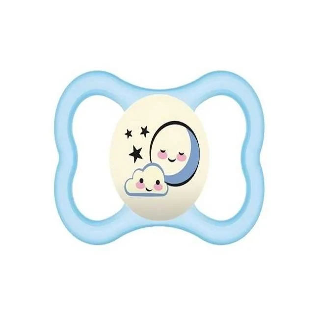 La funzione Night (Luminous) rende questo succhietto indispensabile: il pomello si illumina al buio, consentendo ai genitori e al bambino di ritrovarlo rapidamente durante la notte. Ideale per maschietti con colori e fantasie a tema.
