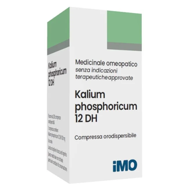 IMO Kalium phosphoricum 12dh 200 compresse è un rimedio omeopatico preparato attraverso un processo di diluizione e dinamizzazione, che consiste nel diluire ripetutamente una sostanza di partenza (vegetale, animale o minerale) e nel sottoporla a scuotimenti energici. Questo processo, secondo i principi dell'omeopatia, potenzia l'azione del rimedio.
