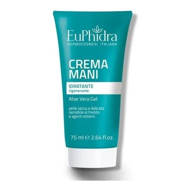 EuPhidra Crema con aloe vera è ideale per mani che presentano fenomeni di secchezza. Molto leggera e facile da usare, si assorbe rapidamente e non lascia sensazione di unto. Formato: 75 ml