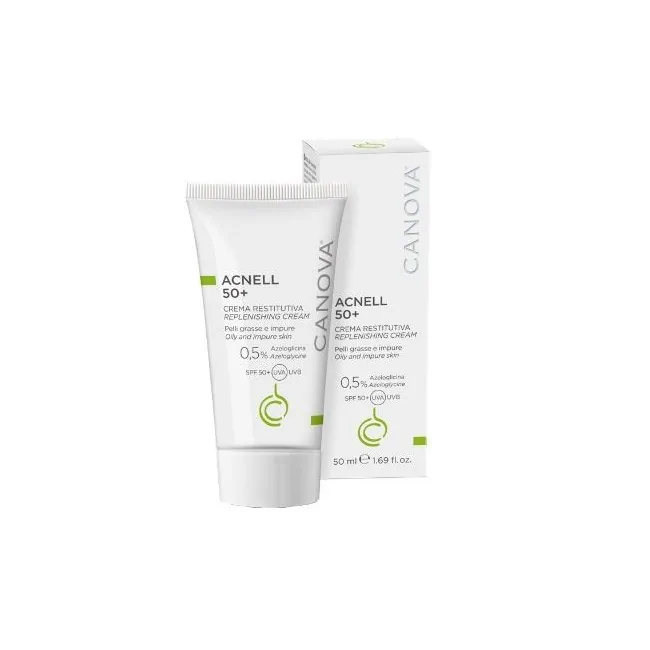 Acnell 50+ Crema Restitutiva è un cosmetico ad uso quotidiano per pelli miste, grasse e a tendenza acneica indicato per ridurre le imperfezioni e i punti neri.