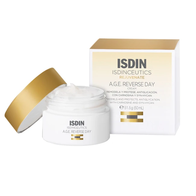 Isdin Isdinceutics AGE Reverse day è un trattamento viso rimodellante con tripla azione anti-aging: anti-macchia, rimodellante e anti-glicazione. Formato: 50ml