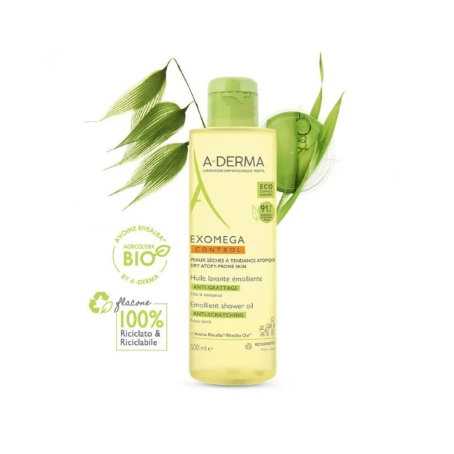 Exomega Control Olio Detergente è un prodotto per l'igiene ed il trattamento quotidiano pelli a tendenza atopica e molto secche. Neonato, bambino, adulto. Formato da 500ml
