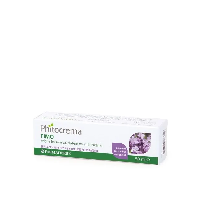 Phitocrema timo è una crema cosmetica Farmaderbe, utile per trattare le affezioni respiratorie, dolori localizzati e affaticamento muscolare. Formato: 50 ml