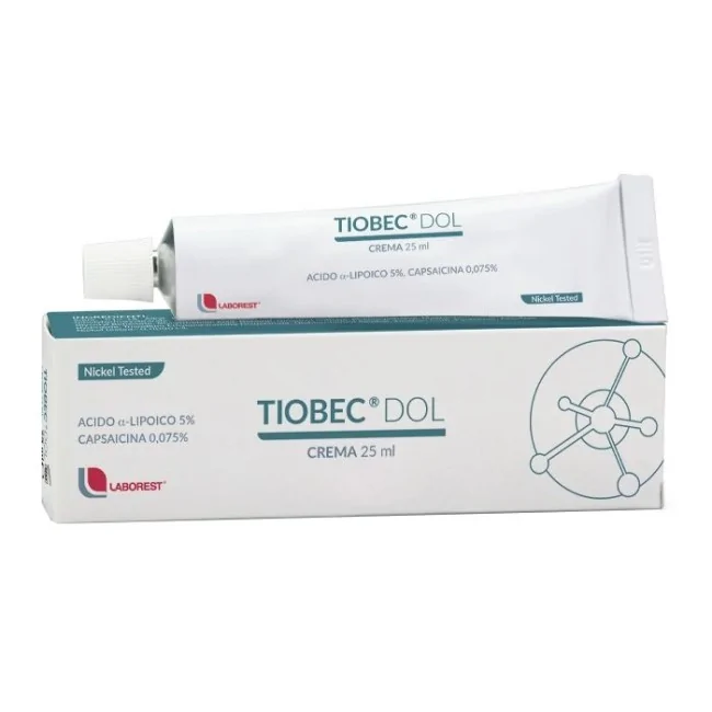 Tiobec Dol Crema è un prodotto dermatologico che combina l'azione di due principi attivi, l'acido alfa-lipoico e la capsaicina, per alleviare il dolore e l'infiammazione cutanea.