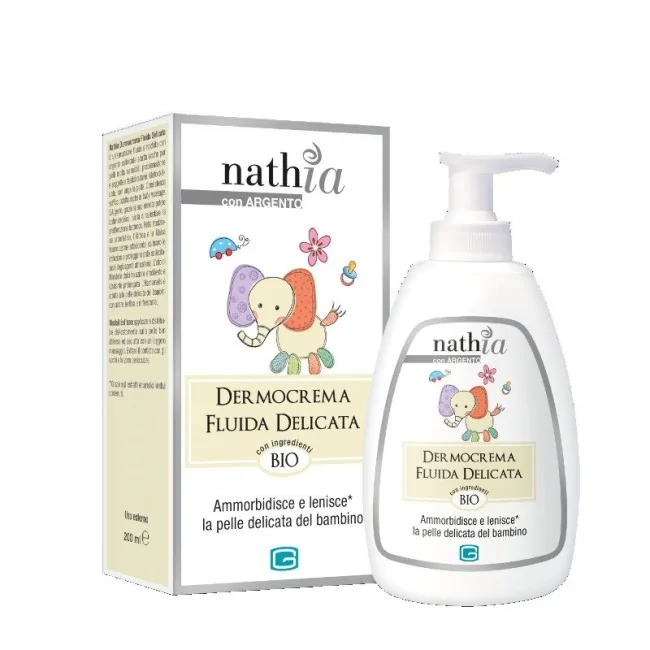 L'Emulsione fluida Cabassi e Giurati Nathia dermocrema è arricchita con Argento colloidale adatta anche per pelli molto sensibili, problematiche e soggette a fastidi cutanei. Molto delicata, non unge la pelle. Consistenza soffice, adatta anche al baby massage. L’Althea e la Malva hanno azione addolcente, calmano le irritazioni e proteggono dalle sollecitazioni degli agenti atmosferici. L’olio di Mandorle dolci ha azione emolliente e idratante prolungata. L’Hamamelis è adatta alla pelle delicata dei bambini con azione lenitiva e rinfrescante.