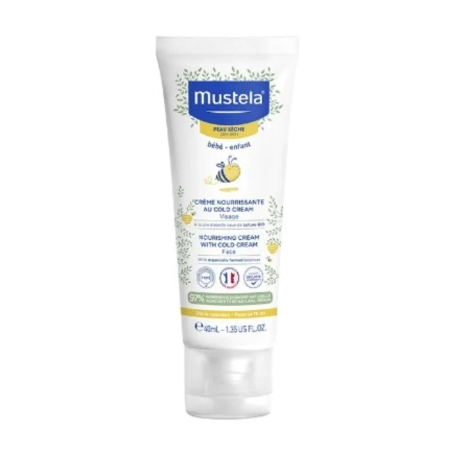 Specificamente formulata per la pelle delicata del bambino fin dalla nascita, la Crema Nutriente alla Cold Cream Mustela è ideale per l'idratazione quotidiana del viso in caso di pelle secca o temporaneamente disidratata.