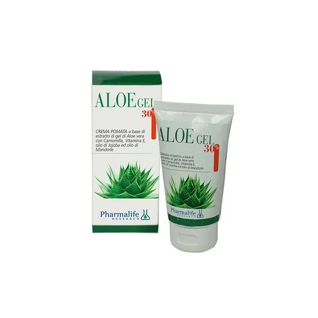 Crema Pomata Aloe Gel 30%, ad alta concentrazione di sostanze vegetali, è un prodotto innovativo caratterizzato dalla presenza del 30% di gel di aloe vera 200:1, camomilla, vitamina E, olio di jojoba ed olio di mandorle. È particolarmente indicata per le pelli sensibili e delicate, per le pelli dei bambini ed in tutti i casi di arrossamenti ed irritazioni o danno cutaneo provocato da UV, agenti chimici o meccanici. La Crema Pomata Aloe Gel 30% è utile per: