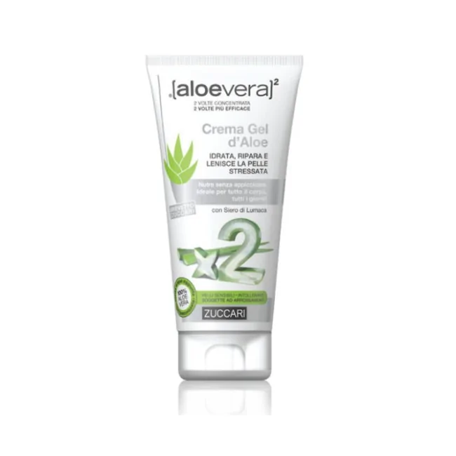 Zuccari Aloevera2 Crema Gel D'aloe, realizzata con il 96% di pura Aloe vera, protegge, ripara, idrata e lenisce anche la pelle più sensibile, stressata e arrossata. Formato: 150 ml